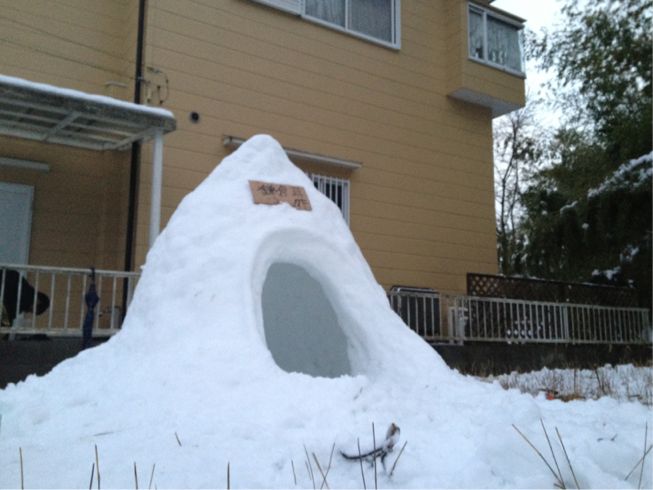 この前降った雪で友達を呼んでかまくらを作りましたwww