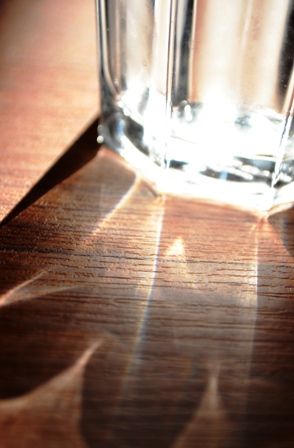 水の入ったコップに光が反射して、涼しげな一枚になりました。